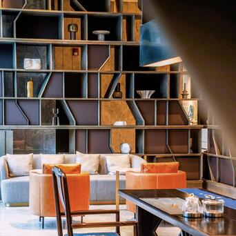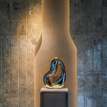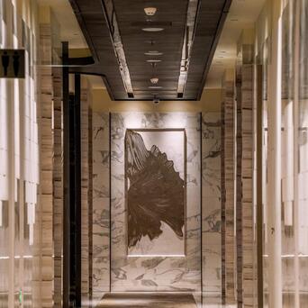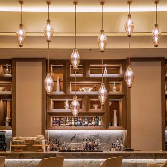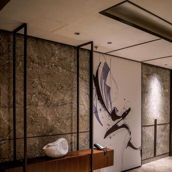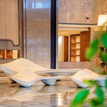 步入酒店便是高挑的大堂空间,仿佛走入山西的深宅大院中,立刻将人从热闹的街巷拉回到安静舒适的氛围中,白色曲线设计的艺术品像一条条飞舞的龙,也正迎合了太原龙城的概念,头顶垂下的琥珀色灯组,好似院落中大红灯笼高高挂的寓意,这样新潮的设施中富有本地元素的融入,真的很绝美。漫步在酒店中的任何一处空间都能看到这样有趣元素的结合。